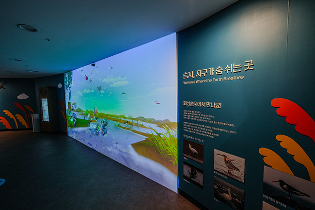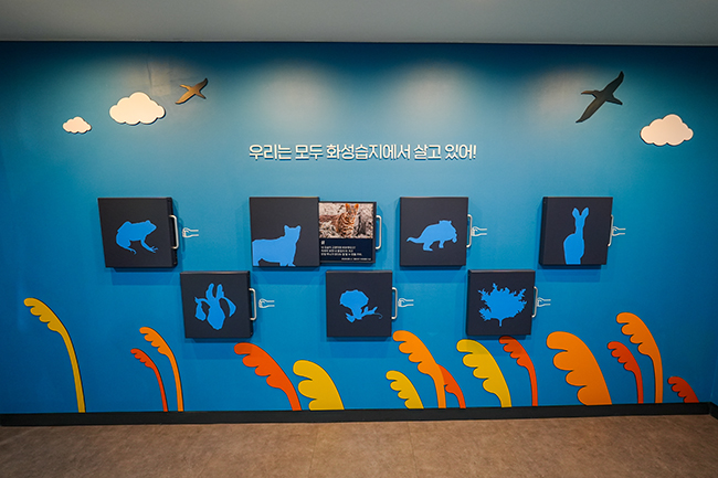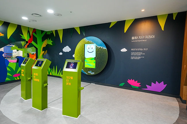 지구가열화의 원인을 뜨거워진 지구가 이야기하는 영상을 통해 만나보고, 온실가스를 줄이기 위한 방법을 퍼즐을 맞춰보며 경험해 봅니다. 또한, '습지'가 무엇인지 어떤 환경적 가치가 있는지 알아보고 화성습지의 사계절을 인터랙티브월을 통해 만나봅니다. 사계절에 따라 변화하는 인터랙티브 월에서 화성습지에 살고 있는 다양한 동물과 식물을 경험하며, 쓰레기와 이산화탄소를 손으로 터치하여 사라지게 해 지구를 지키는 행동의 중요성을 인식합니다. 마지막으로 출동! 지구 지킴이가 되어 탄소중립을 위한 실천 행동을 스스로 선택하고 생활 속에서의 실천을 격려합니다.
