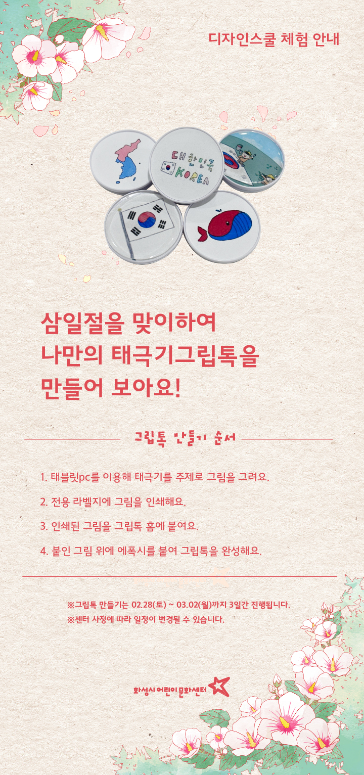 [키즈체험관]디자인스쿨 체험활동 <태극기 그립톡 만들기>